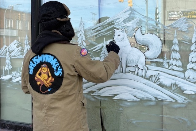 Brush Monkey Artists Paint Winter Scenes on Windows in Cass City