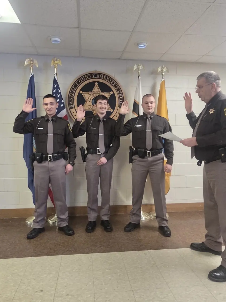 The Sanilac County Sheriff's Office has added three newly trained deputies to its uniform patrol ranks following their recent graduation from the Oakland Police Academy. Deputies Arlen Stocker and Carter Miller, both of Marlette, and Cole McLaughlin of Yale were formally sworn in on December 15th and will serve in the Uniform Services Division.