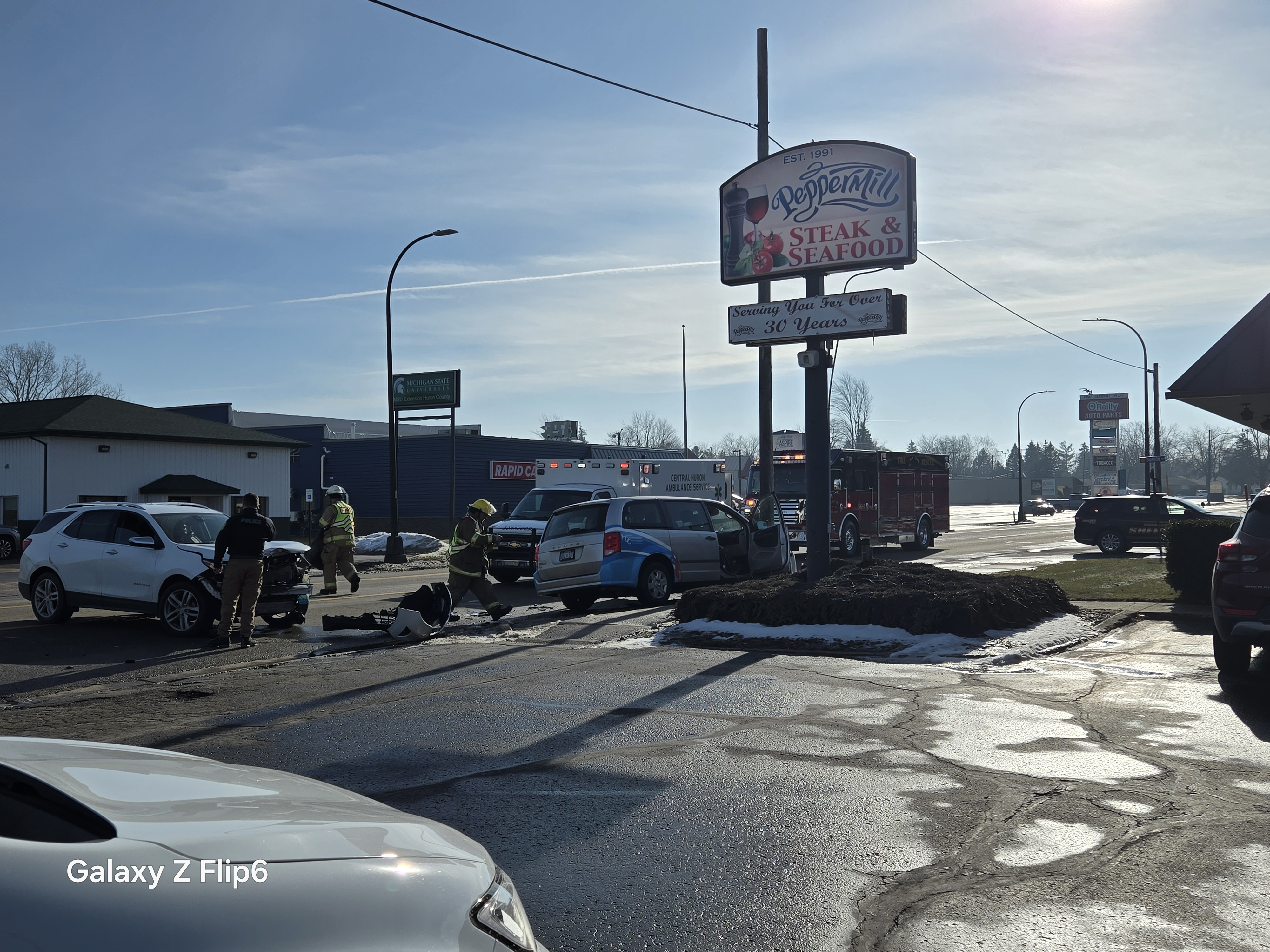 The incident occurred around 11:40 a.m. when a driver attempting to enter a restaurant parking lot crossed into oncoming traffic. A 76 year old Burtchville resident driving a Chevrolet Equinox failed to yield while turning, striking a minivan traveling in the opposite direction.