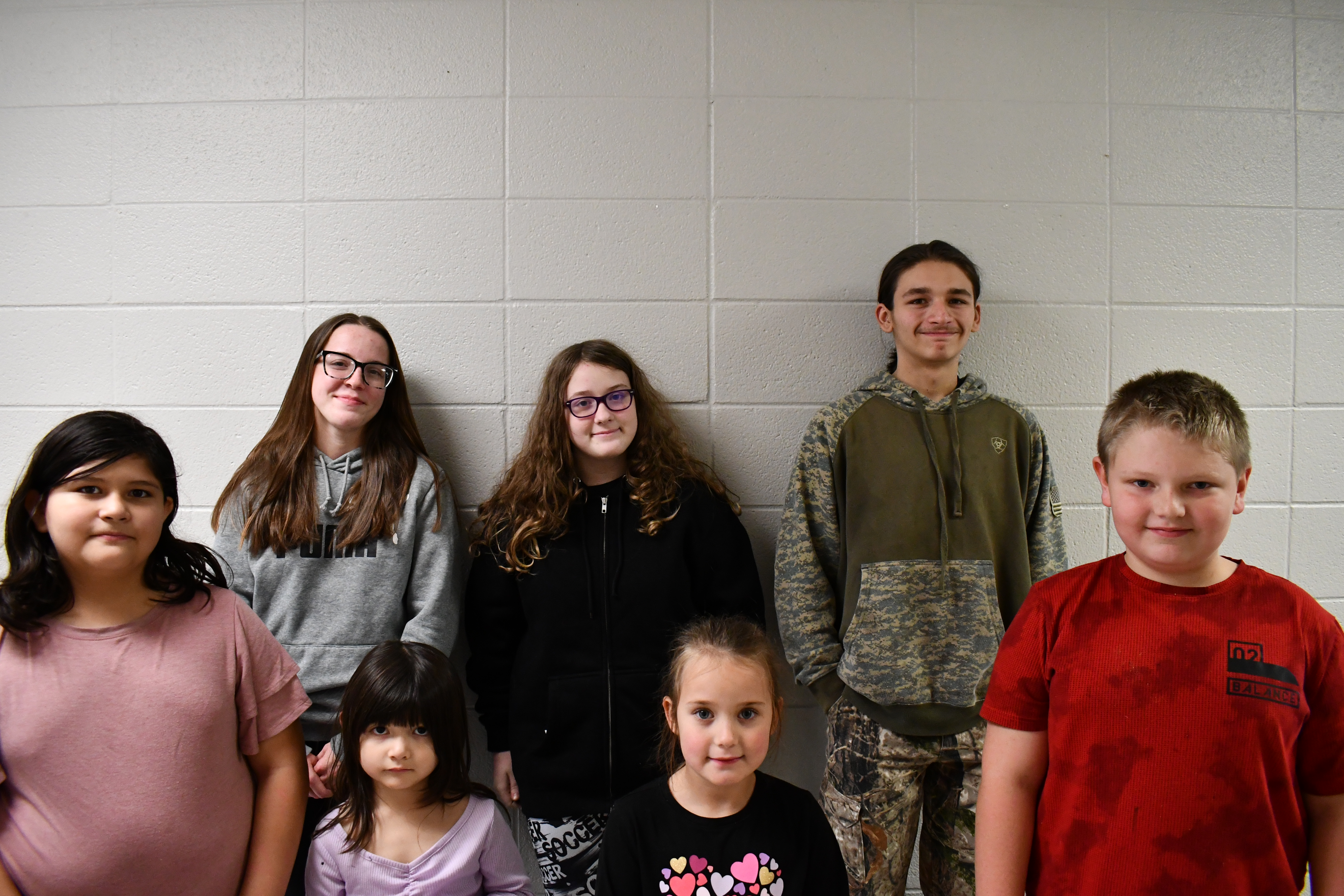 Students selected for November include: Trinity Lomeli, kindergarten, daughter of Kortney Prisoc and Jose Lomeli; Raelynn Hockmuth, first grade, daughter of Jennifer and Tony Hockmuth; Hudson Treib, third grade, son of Kayla and Greg Treib; Evelyn Lomeli, fourth grade, daughter of Kortney Prisoc and Jose Lomeli; Cassilyn Hux, eighth grade (junior high level), daughter of Darla and Donald Hux; Kobain Smith, ninth grade (high school level), son of Kayla and Benjamin Smith; and Ayriona Maikrzek, twelfth grade (senior student), daughter of Charles and Norah Hartman and John Maikrzek.