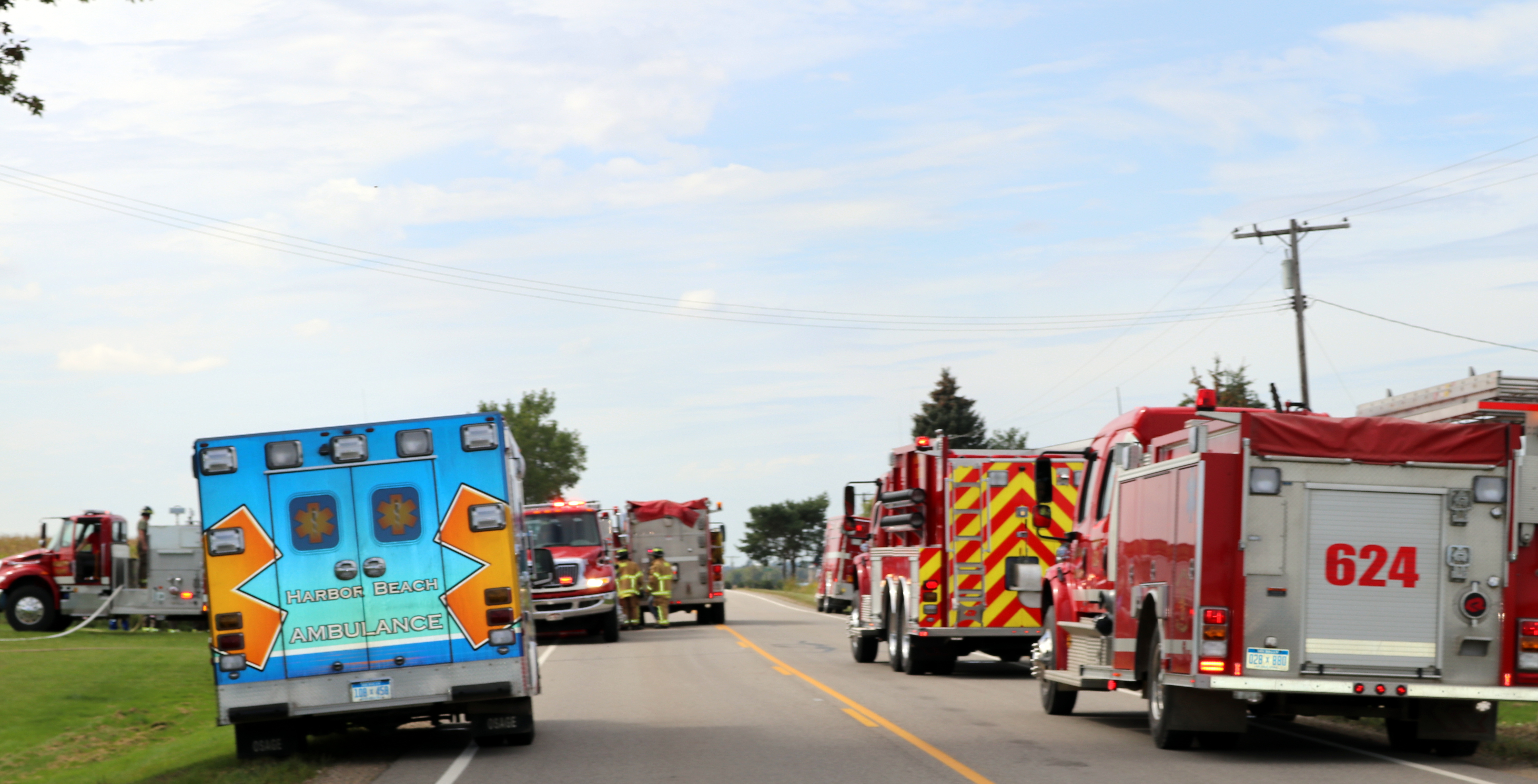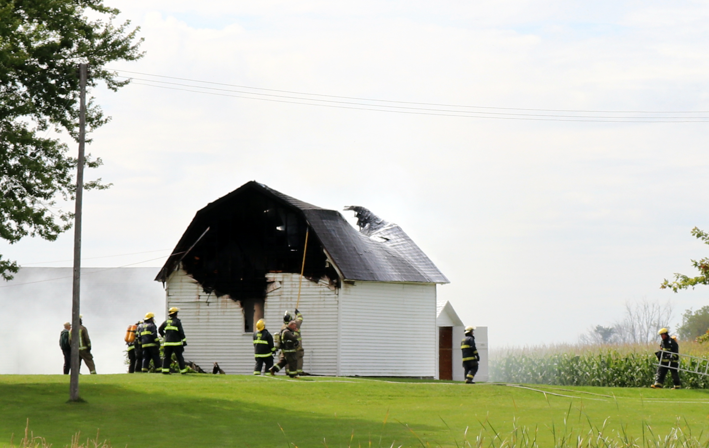 Firemen from 3 departments were called to the scene of a shed fire Wednesday afternoon. Sherman Township Fire Chief Kurt Geiger told us they were called to the Bill Peruski property at 4458 East Atwater Road, west of MacDonald Road. The 20 by 30 foot hip roof style building was pretty much a total loss. It was an older building with several layers of siding that was used for storage and also had a work shop inside. The cause of the fire has not been determined, and there was no estimate of the dollar loss. Sherman Township firemen were assisted at the scene by Sigel and Bingham Township firemen, and were there about 1 1/2 hours. A passerby spotted the fire in the building and alerted the owners. A nearby building had some of the siding melt, but the structure was protected by firemen. There were no injuries.