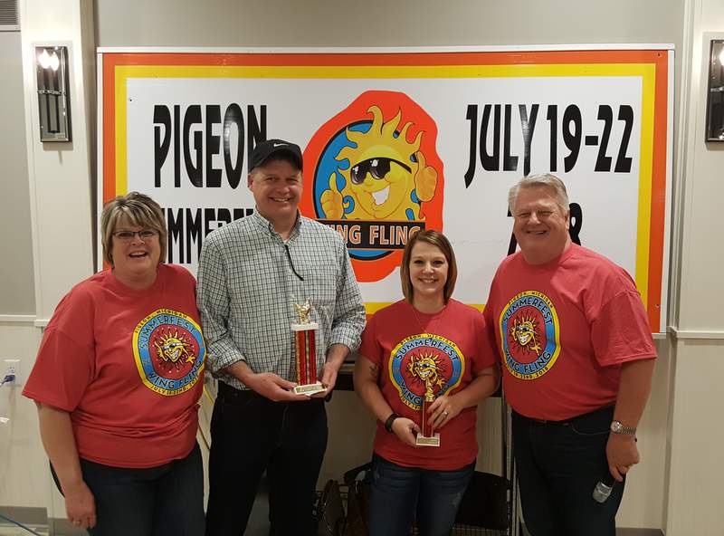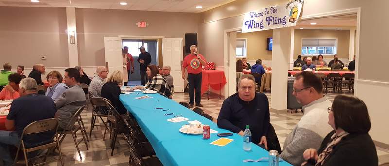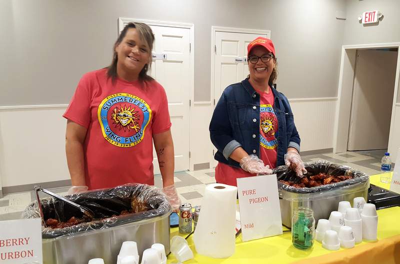 Pigeon's annual wing fling taste testing contest was held late last week at the newly renovated VFW Hall in Pigeon. There were eight recipes were in contention this year. The winner's recipe will be featured for the public to taste during the Summer Fest, July 19th through the 22nd. The eight wings in competition were: Century Oaks, Thumb Area Road Testing, Blue Water Inn, Pigeon Family Market, Pigeon Inn, and Scheurer Healthcare Network. Taking first place for a second year in a row was Ron Bergman from Pigeon IGA - this year his recipe was "Louisiana Simmer". Second place went to Century Oaks Jessica McBride with the recipe: "Raspberry Bourbon". These recipes will be featured at the Summer Fest event in Pigeon July 19th - July 22nd, 2018.