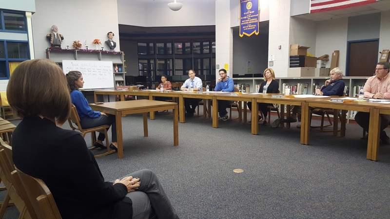 Bad Axe Board of Education met on Monday Night to cover several pressing issues. Theses issues included the appointment of a new Vice-President, at which time member Zac Eskau was immediately appointed after short deliberation, and the appointment of a brand new member to fill the seat that up until this meeting had been left empty. Extensive interviews at around fifteen minutes a piece began, issues were discussed, concerns were raised. A group of concerned and caring community members were rotated to ensure the best choice in appointee. In the end the board decided on the appointment of Kristen Rifenbark, after over an hour of interviews, discussion, and deliberation. Kristen was greeted with applause and was very excited to begin working with the rest of the board.