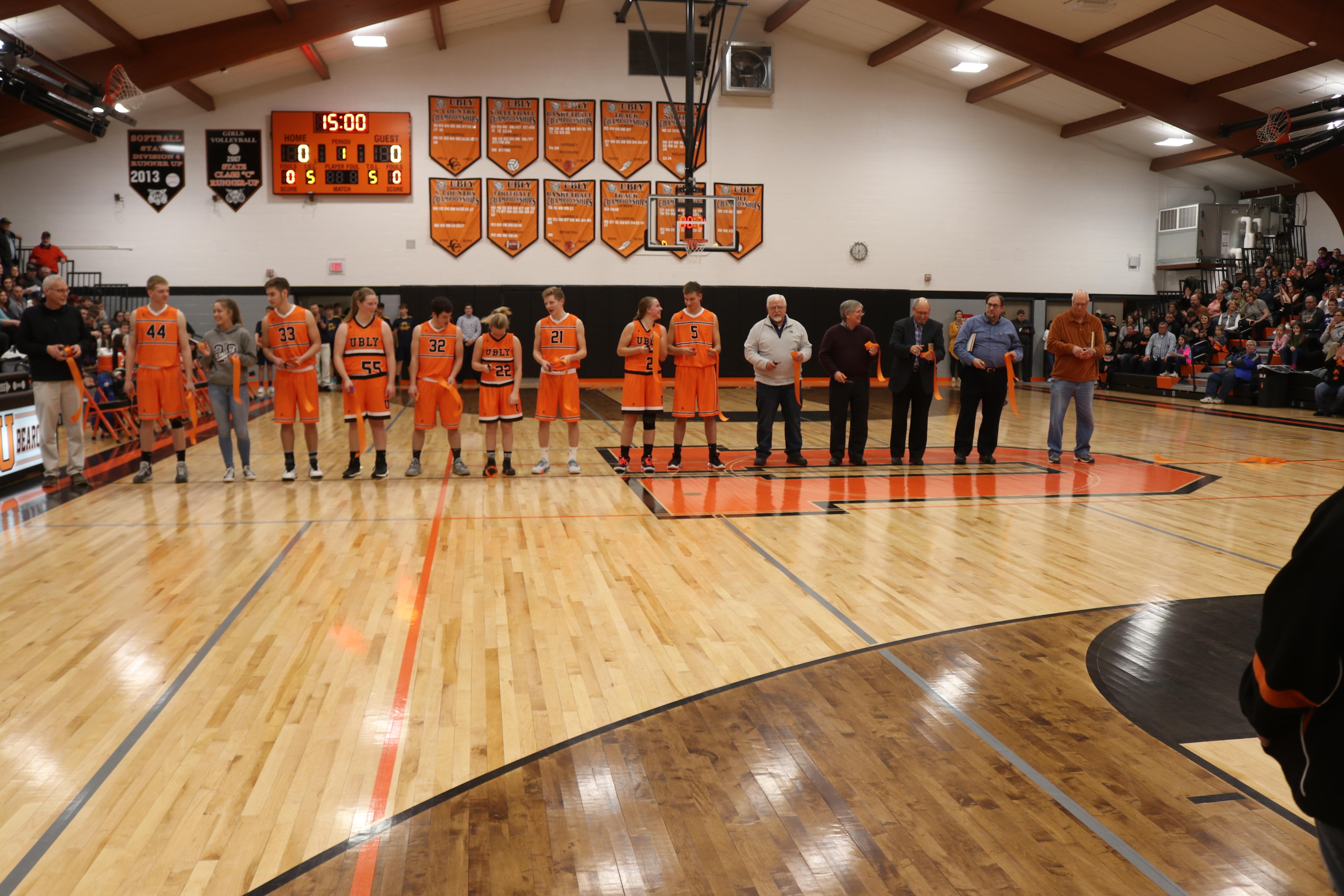On Monday evening, Ubly Schools hosted a gym rededication night to recognize the new gym floor, as well as a few players that made history on it.