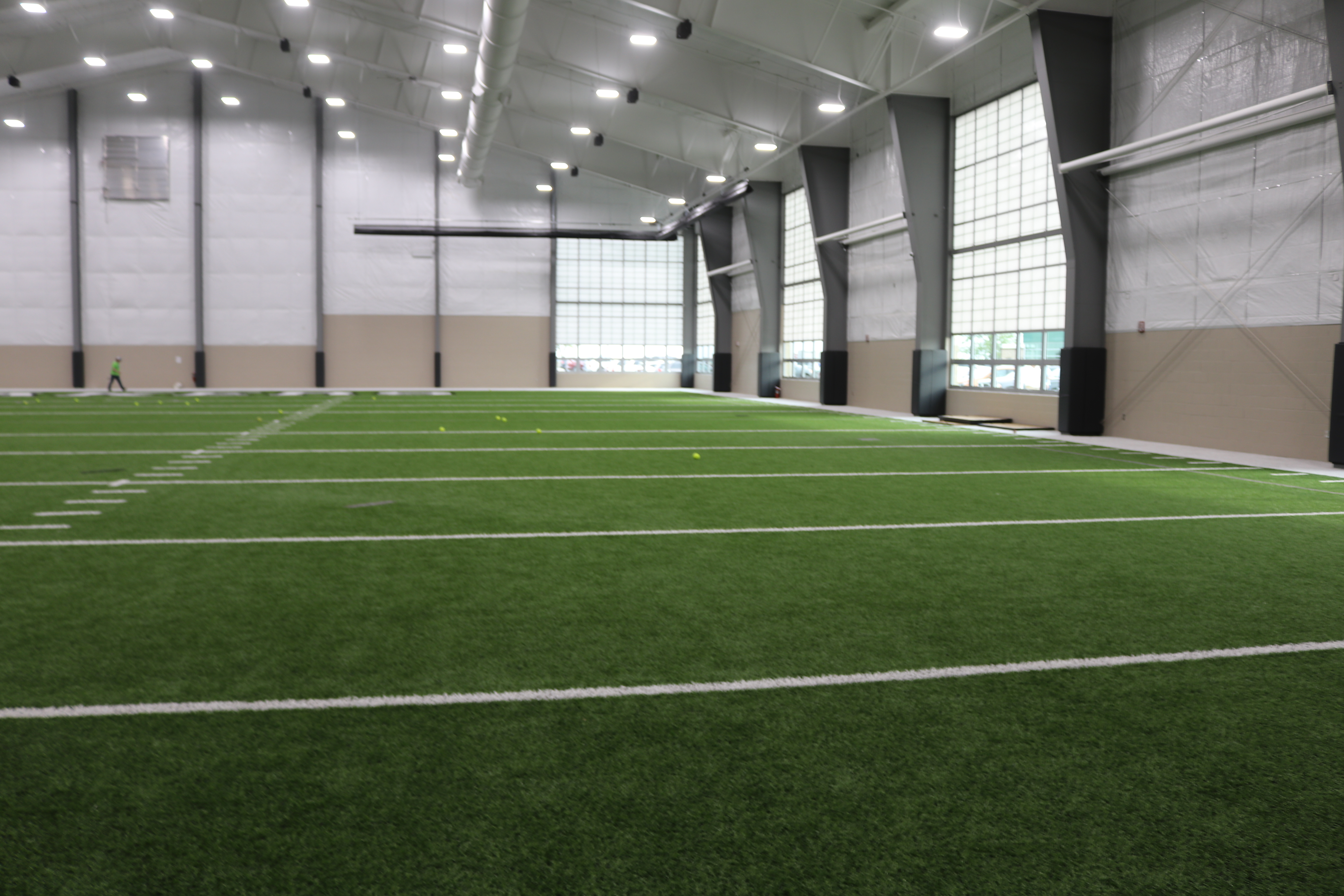 The center is complete with basketball courts, Half of a regulation-sized Football Field for practices of all sorts, a walking track on the second floor, an elevator for people to access the floor, restrooms and concessions inside and outside the facility.