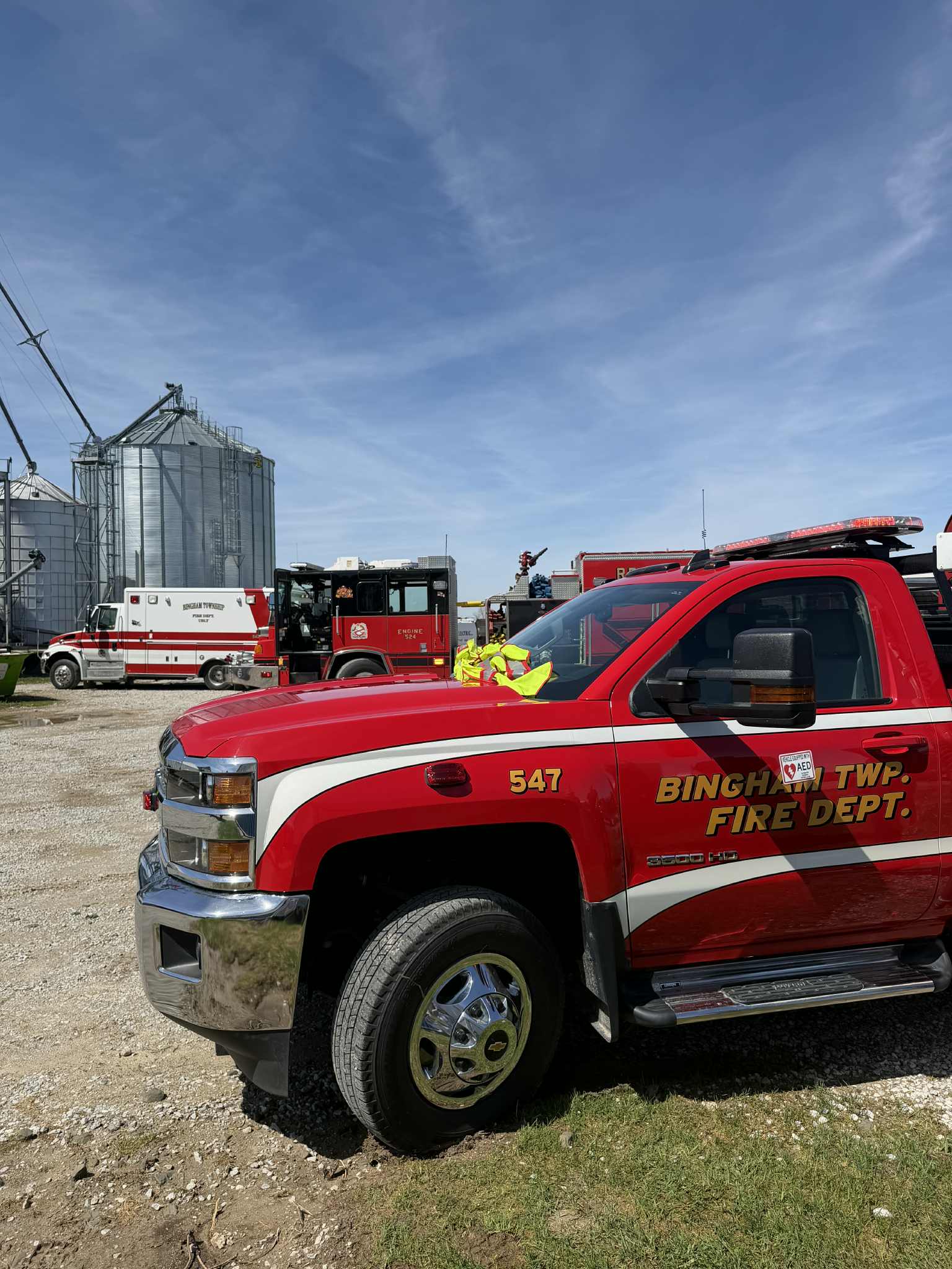 Fire departments assisting at the scene included Harbor Beach Fire Department, Bingham Township Fire Department, Sherman Township Fire Department, and Deckerville Fire Department. East Huron Ambulance was also on scene.