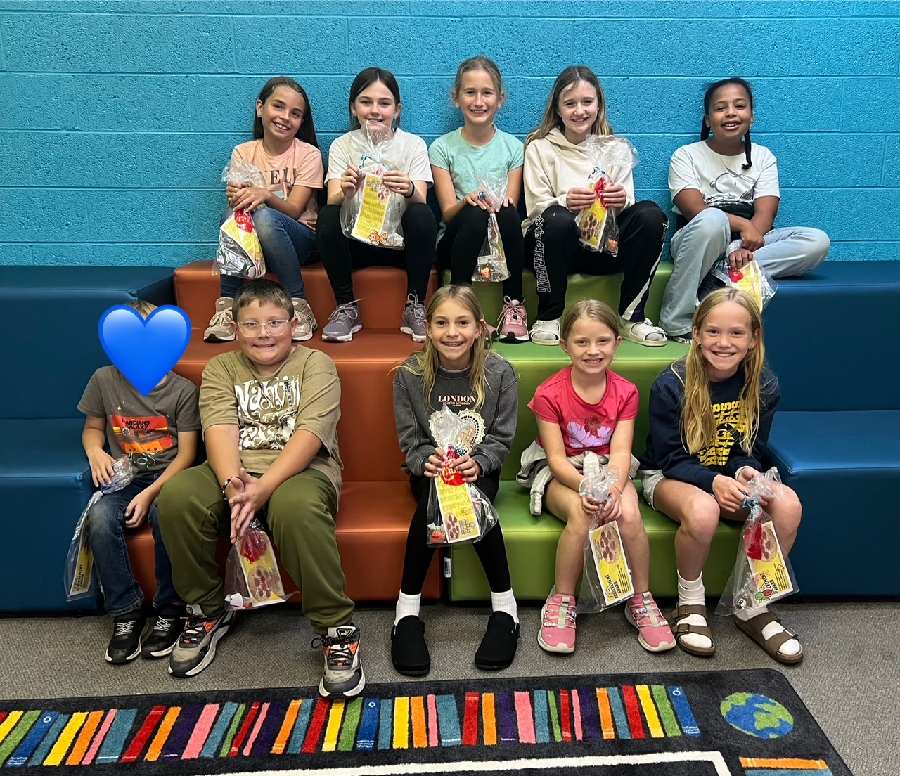 Front row - Axel Buckland (3rd Grade), Issac Bailey (4th), Mya Bolzman (5th), Gabby Clark (3rd), and Marin Straight (5th).